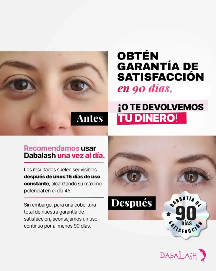 No esperes más, y únete a la revolución de belleza con DABALASH. ¡Aplícalo una vez al día y comienza a ver resultados después de 15 días! Compra ahora y luce unas hermosas pestañas.